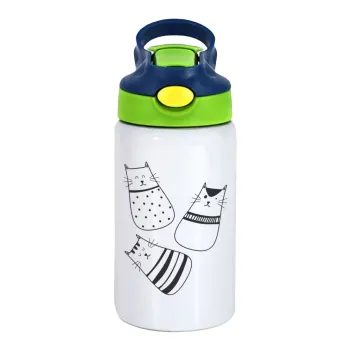 Cute cats, Παιδικό παγούρι θερμό, ανοξείδωτο, με καλαμάκι ασφαλείας, πράσινο/μπλε (350ml)