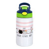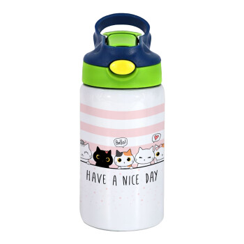 Have a nice day cats, Παιδικό παγούρι θερμό, ανοξείδωτο, με καλαμάκι ασφαλείας, πράσινο/μπλε (350ml)