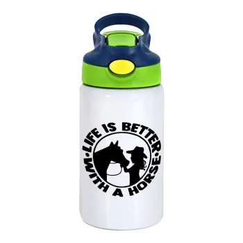 Life is Better with a Horse, Παιδικό παγούρι θερμό, ανοξείδωτο, με καλαμάκι ασφαλείας, πράσινο/μπλε (350ml)