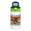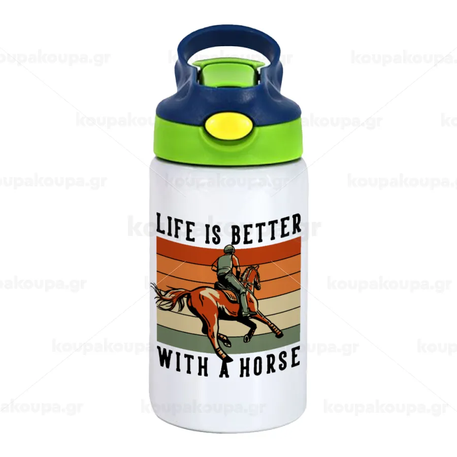Life is Better with a Horse, Παιδικό παγούρι θερμό, ανοξείδωτο, με καλαμάκι ασφαλείας, πράσινο/μπλε (350ml)