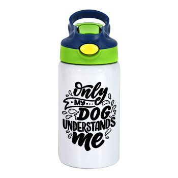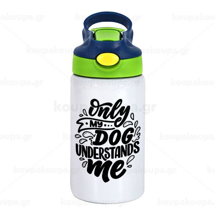 Only my DOG, understands me, Παιδικό παγούρι θερμό, ανοξείδωτο, με καλαμάκι ασφαλείας, πράσινο/μπλε (350ml)