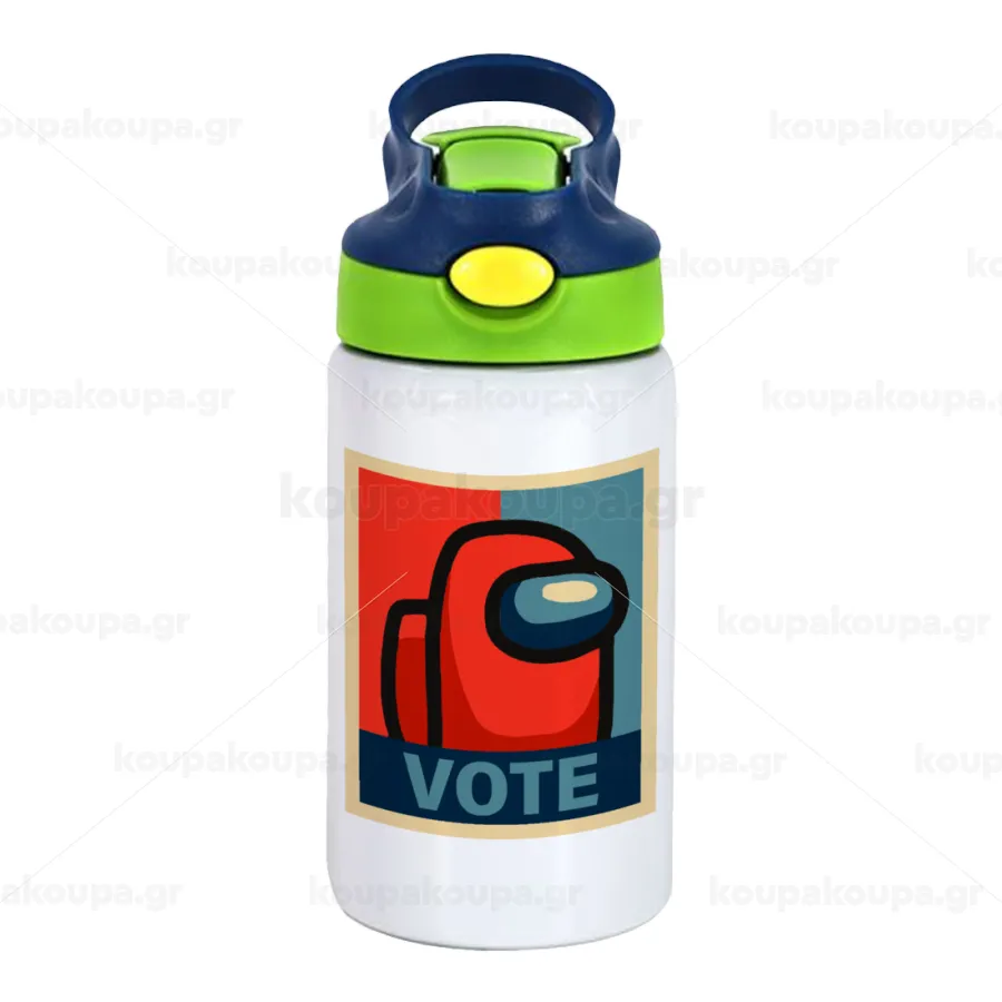 Among US VOTE, Παιδικό παγούρι θερμό, ανοξείδωτο, με καλαμάκι ασφαλείας, πράσινο/μπλε (350ml)