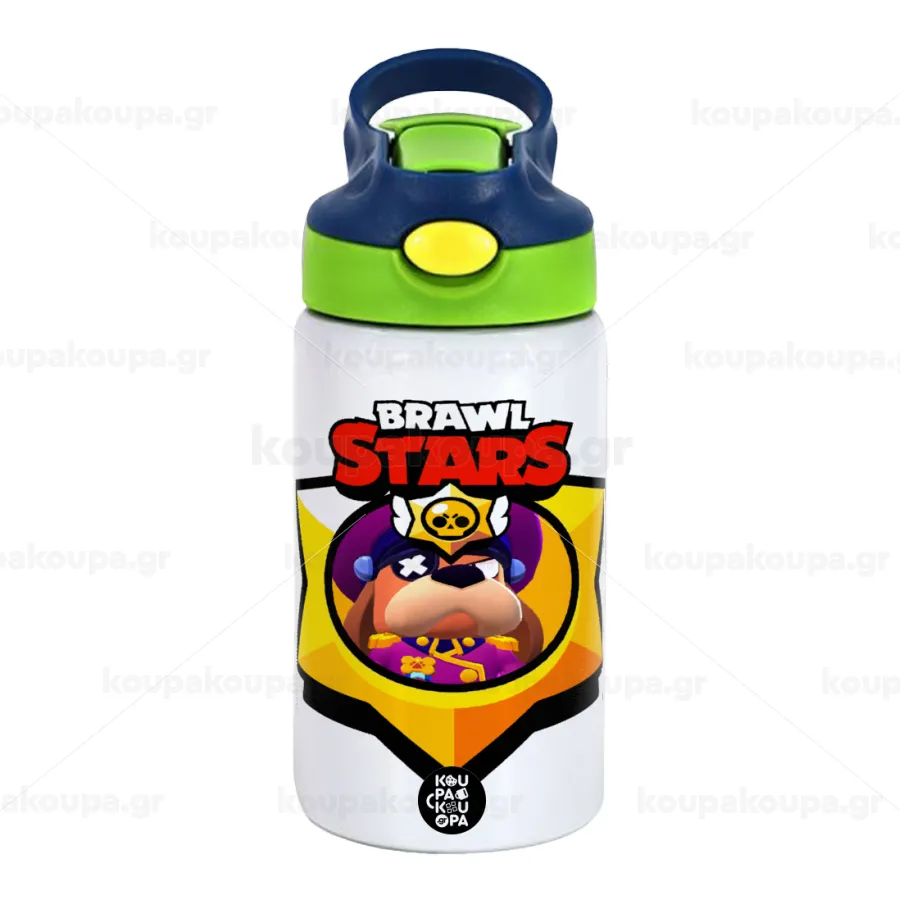 Brawl Stars Ruffs, Παιδικό παγούρι θερμό, ανοξείδωτο, με καλαμάκι ασφαλείας, πράσινο/μπλε (350ml)