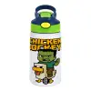 Chicken Jockey, Παιδικό παγούρι θερμό, ανοξείδωτο, με καλαμάκι ασφαλείας, πράσινο/μπλε (350ml)