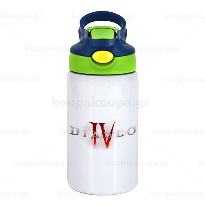 Diablo iv, Παιδικό παγούρι θερμό, ανοξείδωτο, με καλαμάκι ασφαλείας, πράσινο/μπλε (350ml)