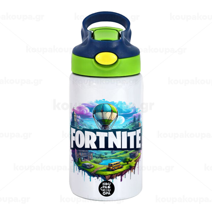 Fortnite land, Παιδικό παγούρι θερμό, ανοξείδωτο, με καλαμάκι ασφαλείας, πράσινο/μπλε (350ml)