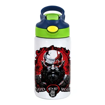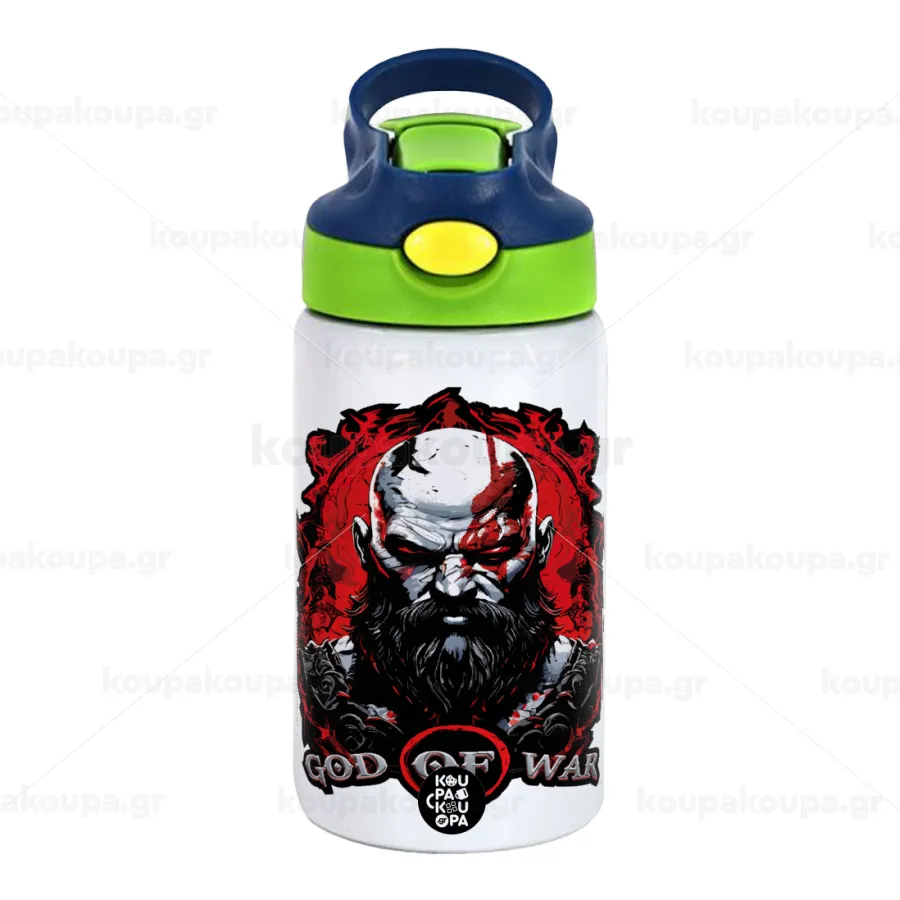 God of war, Παιδικό παγούρι θερμό, ανοξείδωτο, με καλαμάκι ασφαλείας, πράσινο/μπλε (350ml)