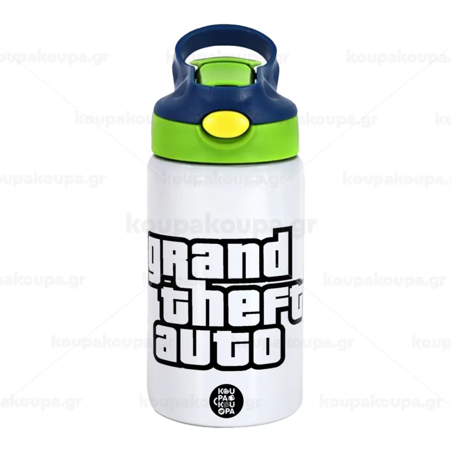 GTA (grand theft auto), Παιδικό παγούρι θερμό, ανοξείδωτο, με καλαμάκι ασφαλείας, πράσινο/μπλε (350ml)