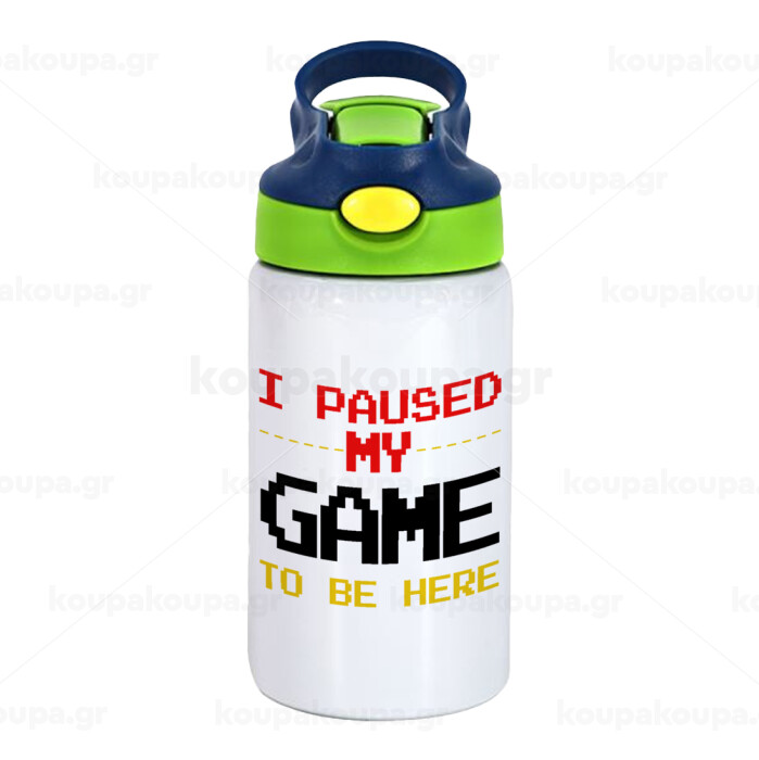 I paused my game to be here, Παιδικό παγούρι θερμό, ανοξείδωτο, με καλαμάκι ασφαλείας, πράσινο/μπλε (350ml)