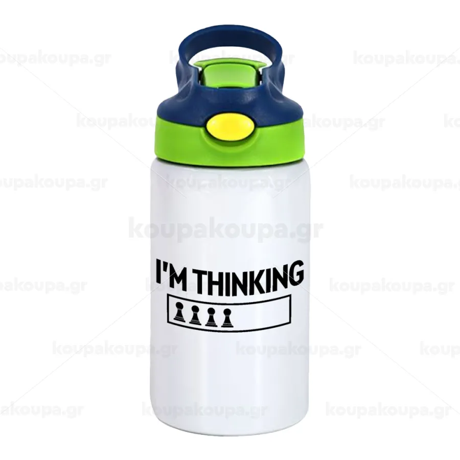 I'm thinking, Παιδικό παγούρι θερμό, ανοξείδωτο, με καλαμάκι ασφαλείας, πράσινο/μπλε (350ml)