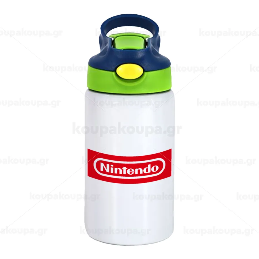 Nintendo, Παιδικό παγούρι θερμό, ανοξείδωτο, με καλαμάκι ασφαλείας, πράσινο/μπλε (350ml)