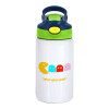Pacman waka waka waka, Παιδικό παγούρι θερμό, ανοξείδωτο, με καλαμάκι ασφαλείας, πράσινο/μπλε (350ml)