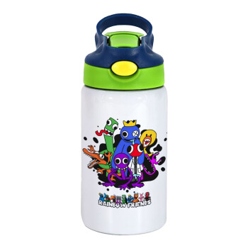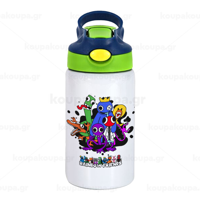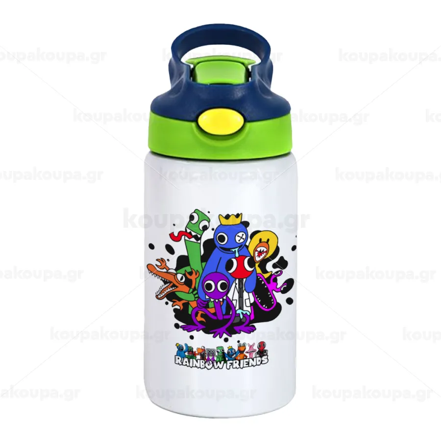 Rainbow friends, Παιδικό παγούρι θερμό, ανοξείδωτο, με καλαμάκι ασφαλείας, πράσινο/μπλε (350ml)