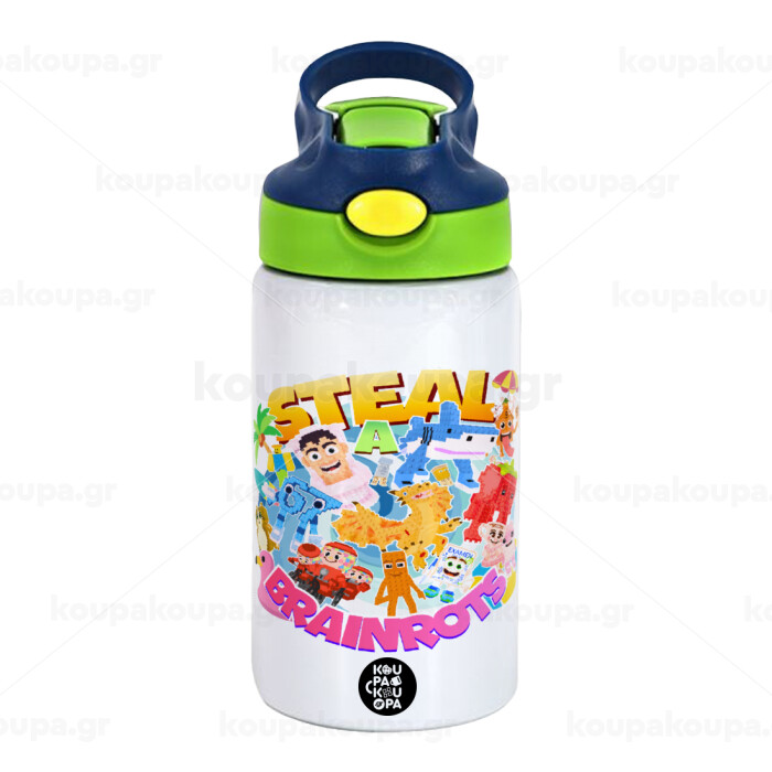 Roblox Steal a Brainrot, Παιδικό παγούρι θερμό, ανοξείδωτο, με καλαμάκι ασφαλείας, πράσινο/μπλε (350ml)