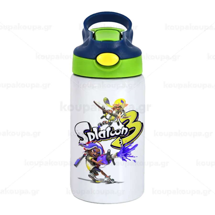Splatoon 3, Παιδικό παγούρι θερμό, ανοξείδωτο, με καλαμάκι ασφαλείας, πράσινο/μπλε (350ml)