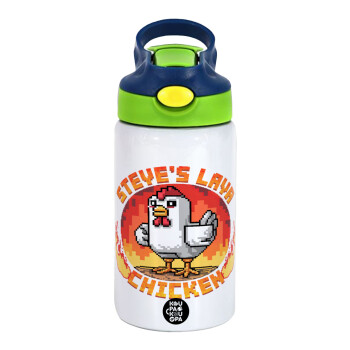 Steve's Lava Chicken, Παιδικό παγούρι θερμό, ανοξείδωτο, με καλαμάκι ασφαλείας, πράσινο/μπλε (350ml)