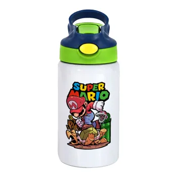 Super mario Jump, Παιδικό παγούρι θερμό, ανοξείδωτο, με καλαμάκι ασφαλείας, πράσινο/μπλε (350ml)