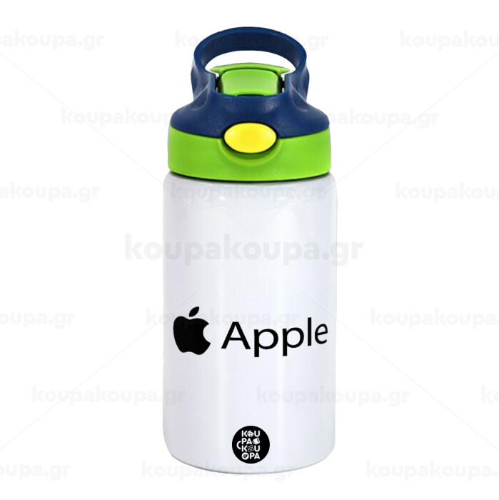 apple, Παιδικό παγούρι θερμό, ανοξείδωτο, με καλαμάκι ασφαλείας, πράσινο/μπλε (350ml)