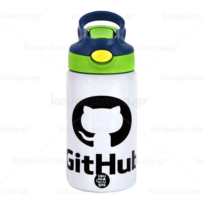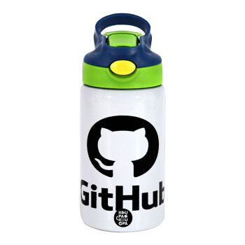 GitHub, Παιδικό παγούρι θερμό, ανοξείδωτο, με καλαμάκι ασφαλείας, πράσινο/μπλε (350ml)