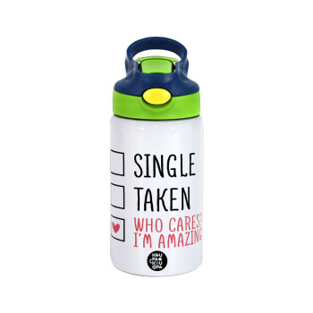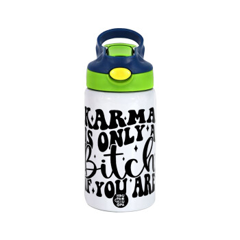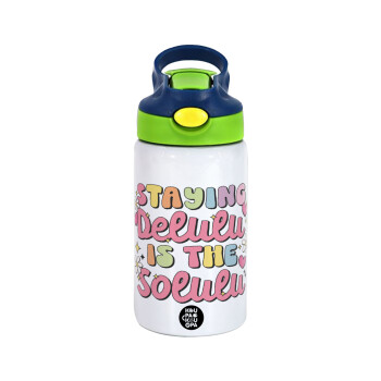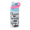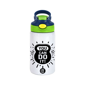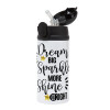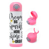 Dream big, Sparkle more, Shine bright, Παιδικό παγούρι θερμό, ανοξείδωτο, με καλαμάκι ασφαλείας, πράσινο/μπλε (350ml)
