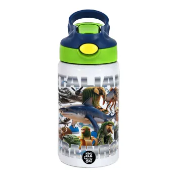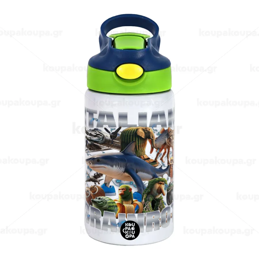 Italian Brainrot, Παιδικό παγούρι θερμό, ανοξείδωτο, με καλαμάκι ασφαλείας, πράσινο/μπλε (350ml)
