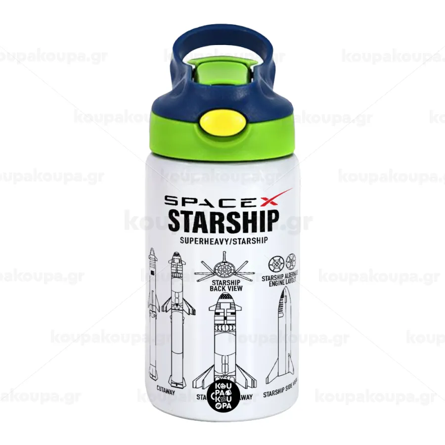 Space X, Παιδικό παγούρι θερμό, ανοξείδωτο, με καλαμάκι ασφαλείας, πράσινο/μπλε (350ml)