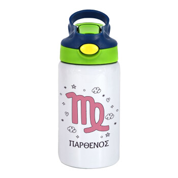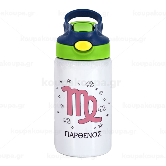 Ζώδια Παρθένος, Παιδικό παγούρι θερμό, ανοξείδωτο, με καλαμάκι ασφαλείας, πράσινο/μπλε (350ml)