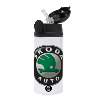SKODA, Παιδικό παγούρι θερμό, ανοξείδωτο, με καλαμάκι ασφαλείας, Μαύρο (360ml) BPA-FREE