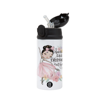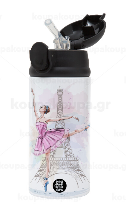 Ballerina in Paris, Παιδικό παγούρι θερμό, ανοξείδωτο, με καλαμάκι ασφαλείας, Μαύρο (360ml) BPA-FREE