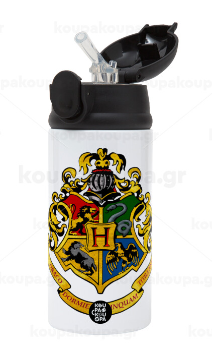 Hogwart's, Παιδικό παγούρι θερμό, ανοξείδωτο, με καλαμάκι ασφαλείας, Μαύρο (360ml) BPA-FREE