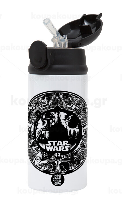 Star Wars Disk, Παιδικό παγούρι θερμό, ανοξείδωτο, με καλαμάκι ασφαλείας, Μαύρο (360ml) BPA-FREE