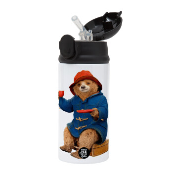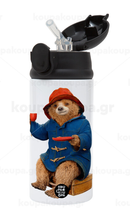 Αρκουδάκι Πάντινγκτον, Παιδικό παγούρι θερμό, ανοξείδωτο, με καλαμάκι ασφαλείας, Μαύρο (360ml) BPA-FREE
