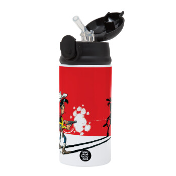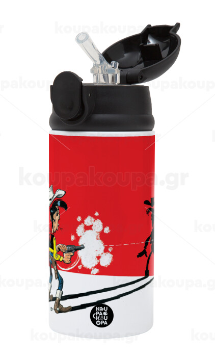 Λούκυ Λουκ σκιές, Παιδικό παγούρι θερμό, ανοξείδωτο, με καλαμάκι ασφαλείας, Μαύρο (360ml) BPA-FREE