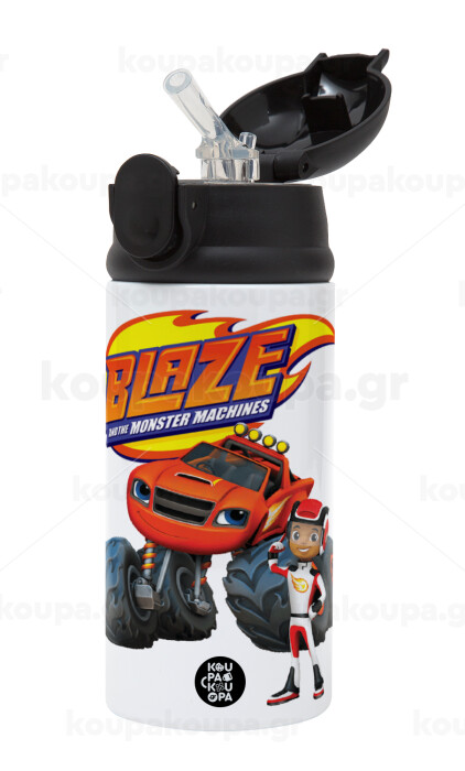 Ο Μπλέιζ και οι Φίλοι του, Παιδικό παγούρι θερμό, ανοξείδωτο, με καλαμάκι ασφαλείας, Μαύρο (360ml) BPA-FREE