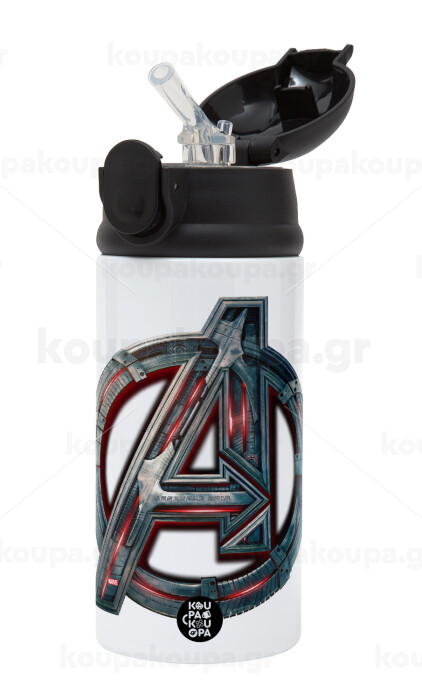 Avengers, Παιδικό παγούρι θερμό, ανοξείδωτο, με καλαμάκι ασφαλείας, Μαύρο (360ml) BPA-FREE