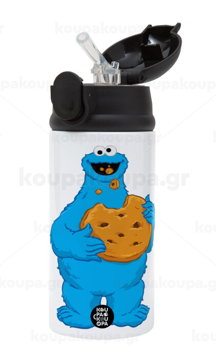 Cookie Monster, Παιδικό παγούρι θερμό, ανοξείδωτο, με καλαμάκι ασφαλείας, Μαύρο (360ml) BPA-FREE