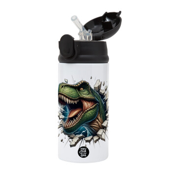 Dinosaur break wall, Παιδικό παγούρι θερμό, ανοξείδωτο, με καλαμάκι ασφαλείας, Μαύρο (360ml) BPA-FREE