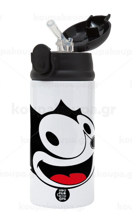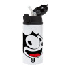 Felix the cat, Παιδικό παγούρι θερμό, ανοξείδωτο, με καλαμάκι ασφαλείας, Μαύρο (360ml) BPA-FREE