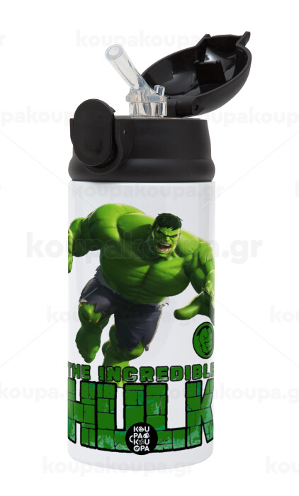 Hulk, Παιδικό παγούρι θερμό, ανοξείδωτο, με καλαμάκι ασφαλείας, Μαύρο (360ml) BPA-FREE