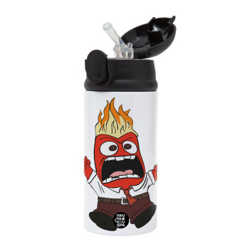 Inside Out θυμός, Παιδικό παγούρι θερμό, ανοξείδωτο, με καλαμάκι ασφαλείας, Μαύρο (360ml) BPA-FREE