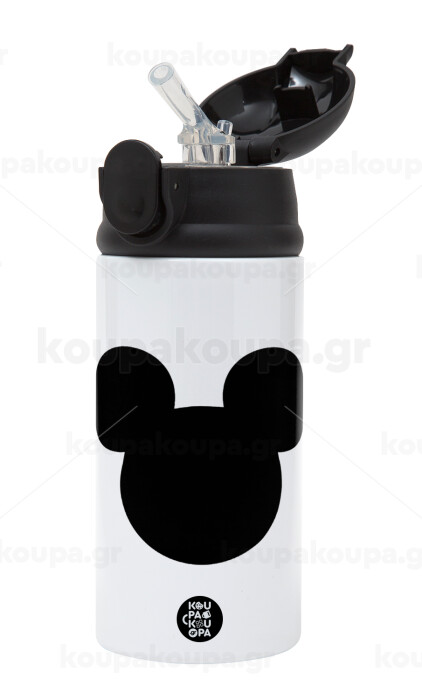 mouse man, Παιδικό παγούρι θερμό, ανοξείδωτο, με καλαμάκι ασφαλείας, Μαύρο (360ml) BPA-FREE