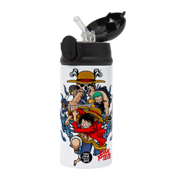 One Piece, Παιδικό παγούρι θερμό, ανοξείδωτο, με καλαμάκι ασφαλείας, Μαύρο (360ml) BPA-FREE