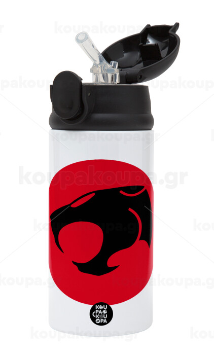 Thundercats, Παιδικό παγούρι θερμό, ανοξείδωτο, με καλαμάκι ασφαλείας, Μαύρο (360ml) BPA-FREE