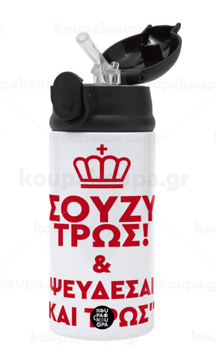 Σούζυ και ψεύδεσαι και τρως, Παιδικό παγούρι θερμό, ανοξείδωτο, με καλαμάκι ασφαλείας, Μαύρο (360ml) BPA-FREE