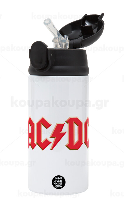 AC/DC, Παιδικό παγούρι θερμό, ανοξείδωτο, με καλαμάκι ασφαλείας, Μαύρο (360ml) BPA-FREE