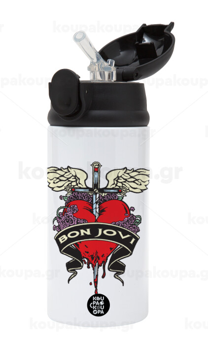 Bon Jovi, Παιδικό παγούρι θερμό, ανοξείδωτο, με καλαμάκι ασφαλείας, Μαύρο (360ml) BPA-FREE