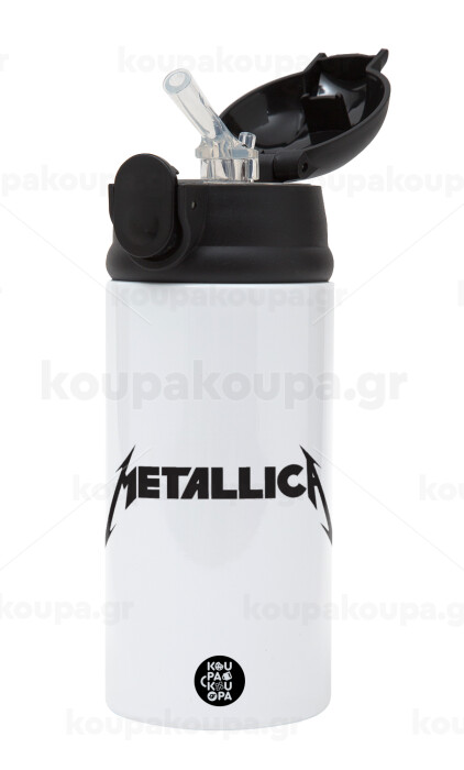 Metallica, Παιδικό παγούρι θερμό, ανοξείδωτο, με καλαμάκι ασφαλείας, Μαύρο (360ml) BPA-FREE