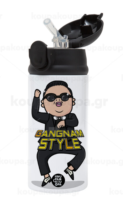 PSY - GANGNAM STYLE, Παιδικό παγούρι θερμό, ανοξείδωτο, με καλαμάκι ασφαλείας, Μαύρο (360ml) BPA-FREE