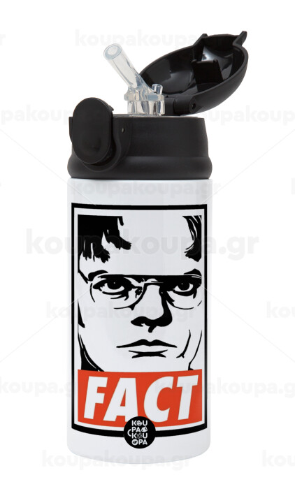 Dunder Mifflin FACT, Παιδικό παγούρι θερμό, ανοξείδωτο, με καλαμάκι ασφαλείας, Μαύρο (360ml) BPA-FREE