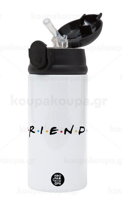 Friends, Παιδικό παγούρι θερμό, ανοξείδωτο, με καλαμάκι ασφαλείας, Μαύρο (360ml) BPA-FREE